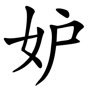 (1) (形声。从女,户声。本义:妇女忌妒丈夫。也指忌妒别的女子的姿色)