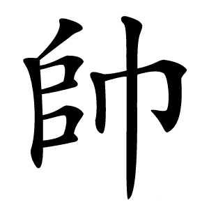 ⒍ 面容俊俏或舉止瀟灑、有風度。如:“帥氣”、“這個男孩長得很帥。”