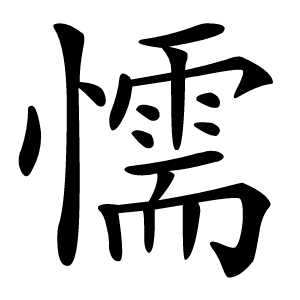 (1) (形声。从心,需声。本义:胆小,含有软弱之意;弱)
