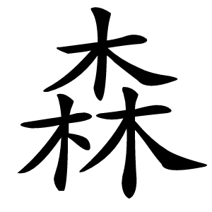 ⒈ 树木众多,引申为众多、繁盛:森林。森立。森森。森然。森郁。