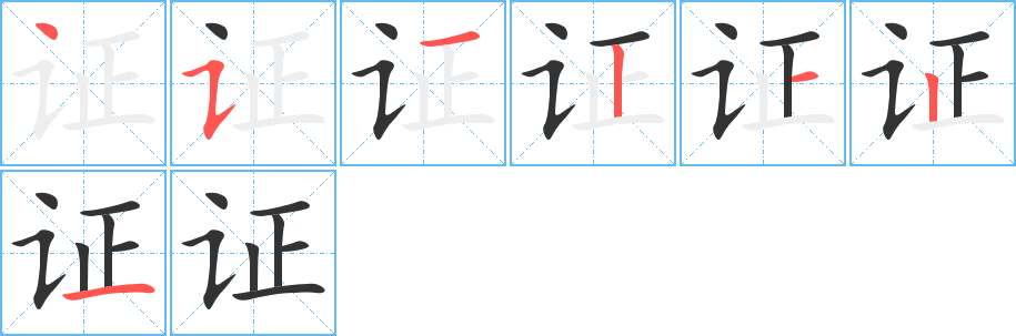 (6) 又如: 证占(验证);证验(验证);证类(以同类事物作证);证审(验证审察);证察(考证审察)